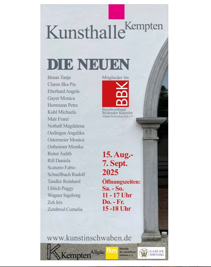 Öffnungszeiten: 20. Juli bis 24. August 2025, Mo. bis So., 10-18 Uhr Finissage: 24. August 2025, 15.00 Uhr mit der Band „BE:ST“